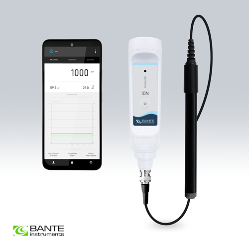 Wireless Bluetooth ion tester for Android smartphone or tablet, selectable 5 ion concentration measurement methods, including direct reading, known addition/subtraction, sample addition/subtraction, accuracy 1% F.S.